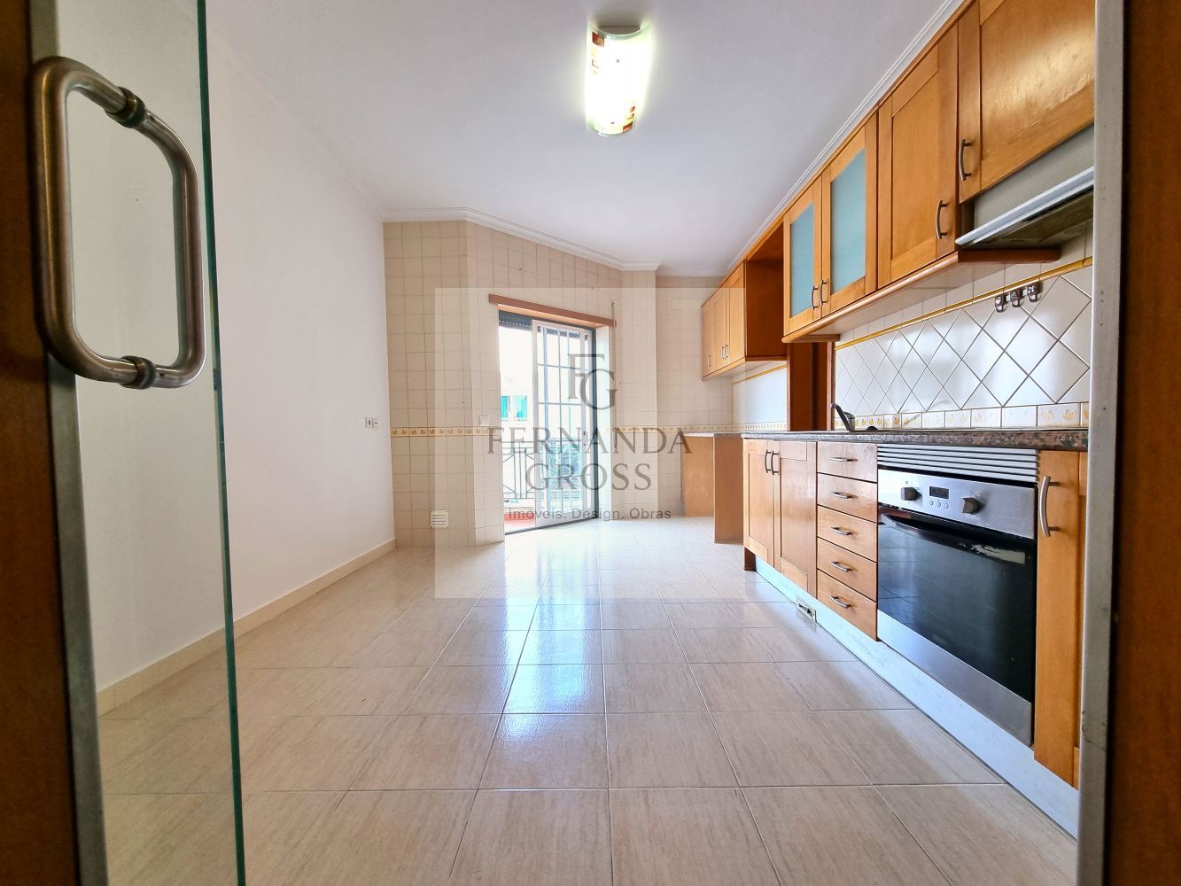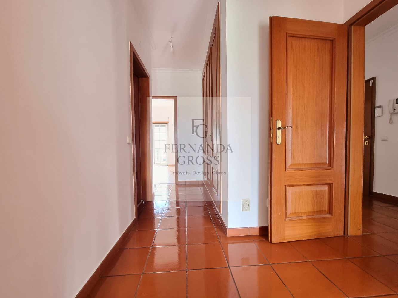 Apartamento de três quartos, todos os quartos possuem roupeiros embutidos e varanda, sendo um dos quartos uma suíte com roupeiro embutido. Os quartos são espaçosos e bem iluminados. A cozinha está totalmente equipada, possui despensa e também uma varanda. A sala é ampla, com muita luz natural graças às suas diversas janelas, e dispõe ainda de uma varanda e lareira. O imóvel conta com aspiração central, pré-instalação de ar condicionado e uma garagem box para um carro. Com bons acessos, próximo de hipermercados, acesso rápido à autoestrada A23.